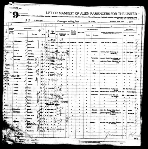 1921-01-03 New York, U.S., Arriving Passenger and Crew Lists, 1820-1957 for Clara Klang, Sheet A